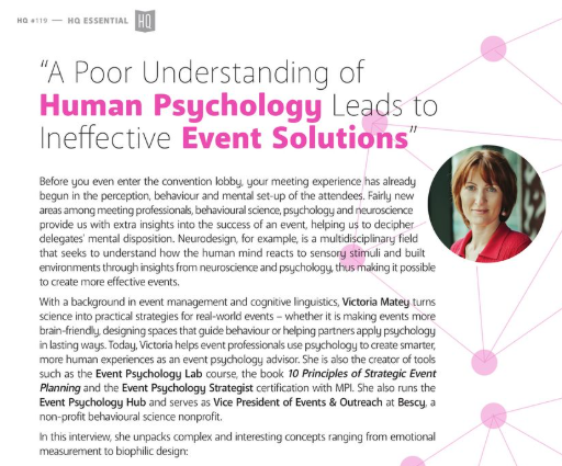Check some of Victoria's content covering a variety of event psychology topics as featured in top industry publications and partner blogs: